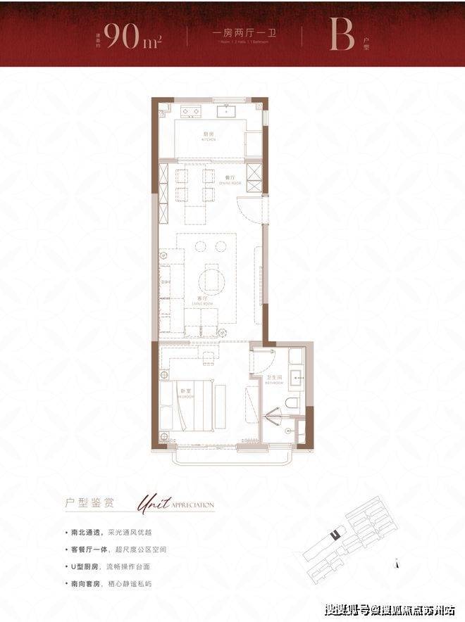 建面约90m²尊享1房户型,在100m²的基础上,进一步降低总价门槛的同时,也带来了设计上针对实用性的小巧思。